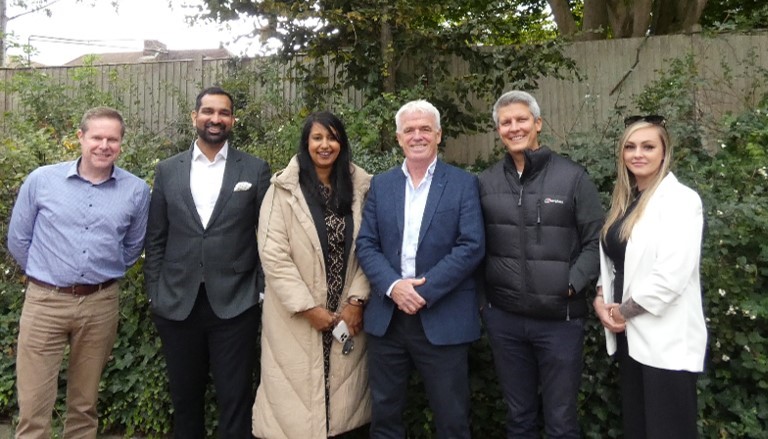 (L to R) Image depicts Richard Stanfield, franchise consultant, Amrit Dhaliwal, CEO, Walfinch, Kam Gill, Franchisee Walfinch Oxford, Greg Renk, Managing Director of Walfinch Buckinghamshire,Ian Thompson, franchisee, and Tiffany Meachim, franchisee.